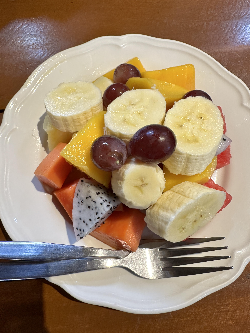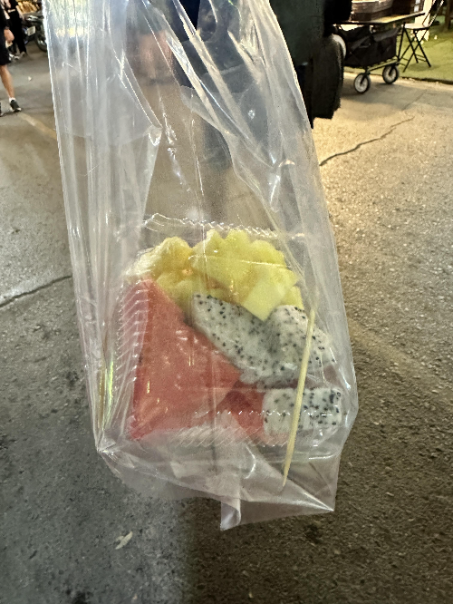전부터 먹어봐야지 생각한 빠이야시장의 교자퀸 군만두를 먹고, 믹스과일도 사 먹었다.