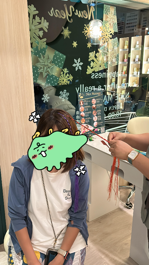 처음에 갔을 때 마사지받는 사람이 많아서 30분 정도 있다가 와달라고 해서 야시장 돌다가 다시 방문해서 머리를 땋았다.