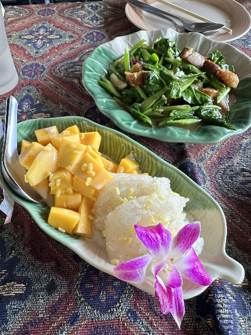 특히 쿠킹클래스에서 옆에 앉은 여행자분이 만들어서 먹어보라고 했던 망고라이스가 너무 맛있었어서 주문했는데, 역시나 코코넛밀크와 어우러져서 달달한 맛을 내는 망고라이스는 마음에 드는 디저트였다. 처음에 망고랑 라이스라니 저걸 먹는다고? 하는 마음이 있었는데, 역시 뭐든 경험을 해봐야 하나보다. 새로운 경험을 하면서 내가 가지고 있던 내가 옳다는 나의 생각이 깨지는 순간이 나는 재밌다:)