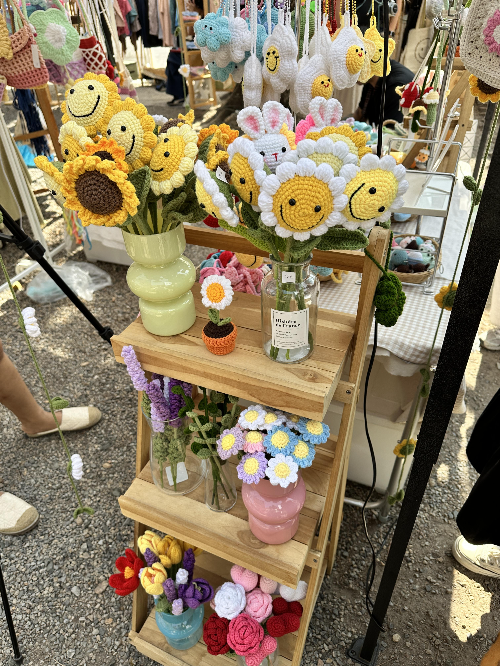 타페문을 지나 쭉 걷다 보니 작은 공간에 크래프트 마켓이 열리고 있어서 구경하러 들어가 봤다. 정성스럽게 수작업한 다양한 소품들이 판매되고 있었다. 구경하다가 귀여워서 지나칠 수 없었던 뜨개화분을 기념품으로 구매했다.