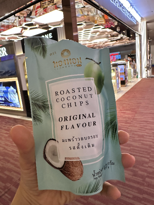 체크인을 하고 들어와서 면세구역 구경하다가 일전에 유연석이 유튜브에서 추천한 코코넛칩이 보여서 사서 먹어보니 달달하고 바삭한 게 맛있었다. 그래서 지인들에게 선물하려고 여러 개 더 구매했다. 치앙마이 기념품 선물로도 가볍게 괜찮을 거 같다.