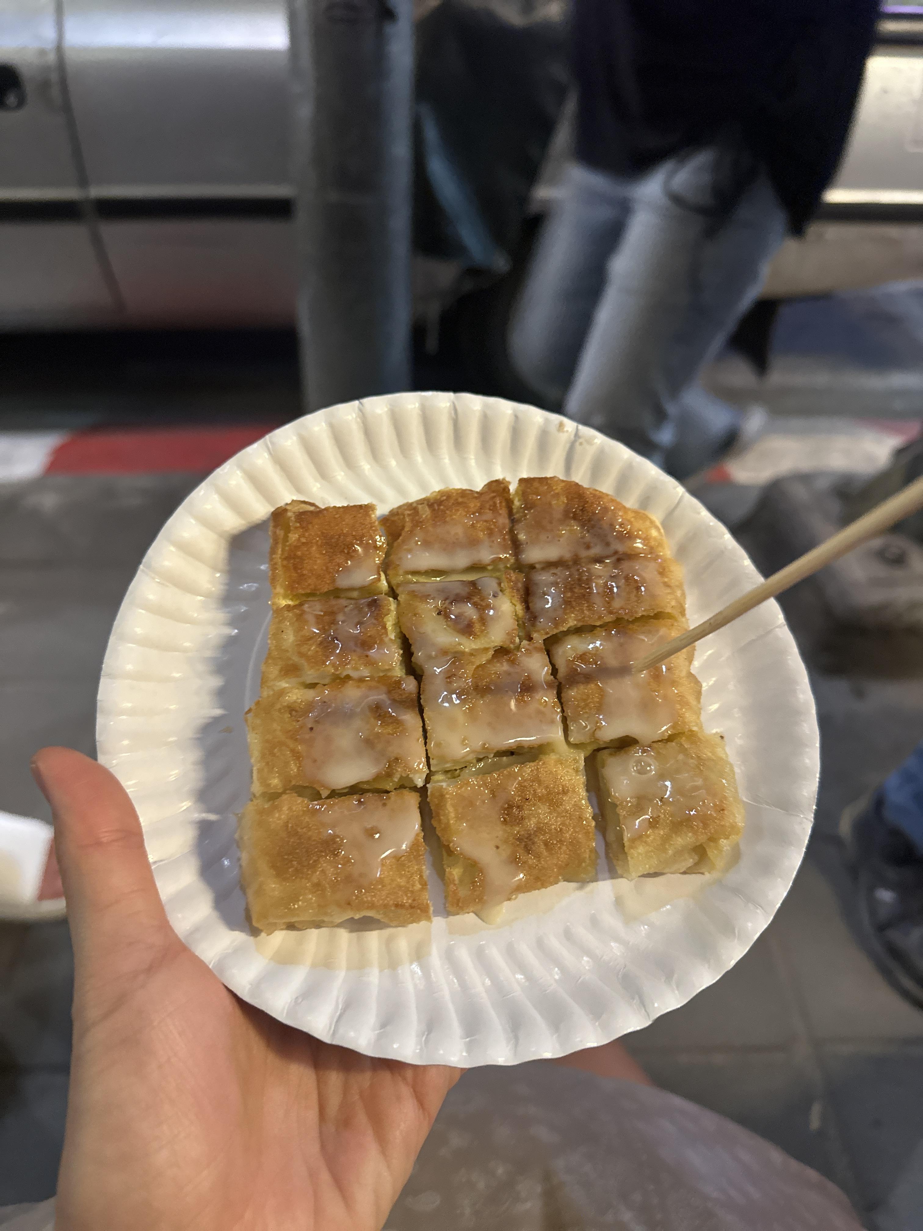어려 보이는 남자 한 분이 결제를 받고 주문을 받았고, 여자 두 분이 고수의 손길로 로띠를 만들어나갔다. 주문 후 15분 정도 기다린 거 같다. 오리지널로 먹었는데 겉바속촉의 달달한 디저트였다. 다음엔 오리지널 말고 다른 걸 먹어봐야지 했는데 아쉽게도 다음에 갔을 땐 사람이 너무 많아서 다시 먹지 못했다.. 지금 생각해도 다시 못 먹은 게 아쉽다.