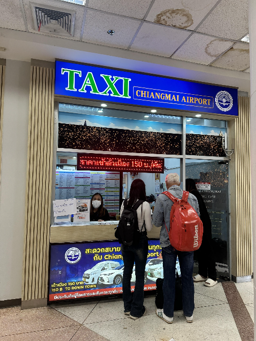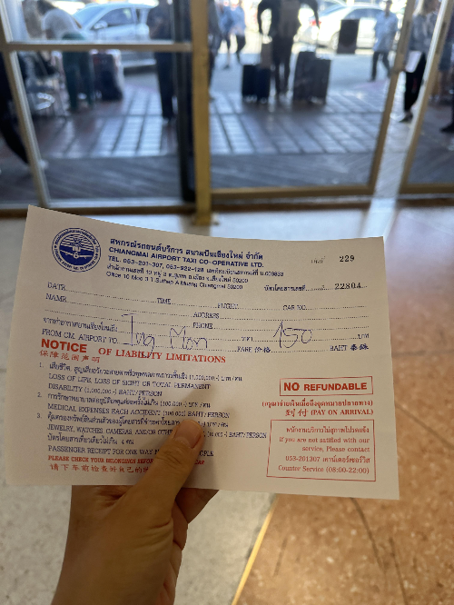 치앙마이 공항에서 나와서 1번 게이트로 쭉 가면 TAXI라고 쓰여있는 카운터가 있는데 거기에 구글지도 등을 통해 본인 숙소를 보여주면 종이를 준다. 그 종이에 숙소명과 가격이 적혀있다.(근데 숙소명도 제대로 안 보고 가격을 적어주는 느낌이었다, 올드타운인지 님만해민인지 산티탐인지.. 큰 지역만 보는 느낌이랄까?) 그 종이를 가지고 나가면 기사님이 배정되고 그 택시를 타고 가면 된다. GLN 결제도 되고, 택시에서 내릴 때 결제하면 된다. 너무 흥분한 나머지 나는 캐리어를 택시카운터 앞에 두고 나왔고 택시를 타려 할 때 캐리어가 없음을 발견하고 열심히 달려갔다 나왔다. (진정해..)