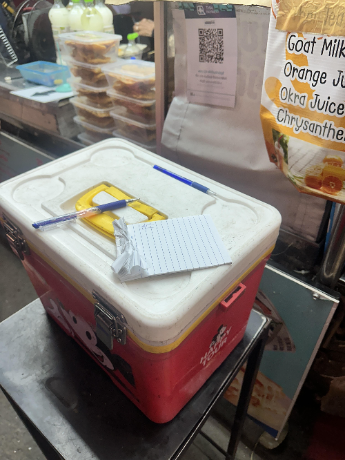 많은 사람들 속에서 어떻게 주문해야 하는지 몰라서 멍 때리고 있는데 한국분이 날 보고 저기 있는 남자분에게 주문 후 결제하고 번호표를 받으면 된다고 천사처럼 설명해 주셨다..ㅠㅠ 그분의 설명에 따라서 계산을 받고 있는 남자분에게 주문을 했고 결제 후 번호표를 받았다. 이후 내가 받은 번호를 부르면 만들어진 로띠를 받아가면 되는 시스템. 뭔가 엉성해 보이긴 해도 생각보다 시스템은 정교하게 잘 굴러갔다ㅎㅎ