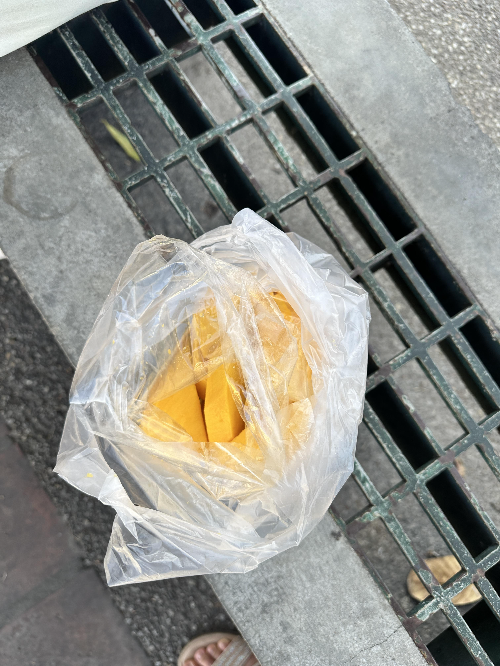 이렇게 실한 망고가 키로에 2,400원이라니.. 치앙마이에서 매일 망고 먹으면서 살고 싶다.. 껍질을 까서 달라고 하면 그 자리에서 껍질을 까서 먹기 좋게 잘라주신다. 역시나 망고는 맛있었다:)