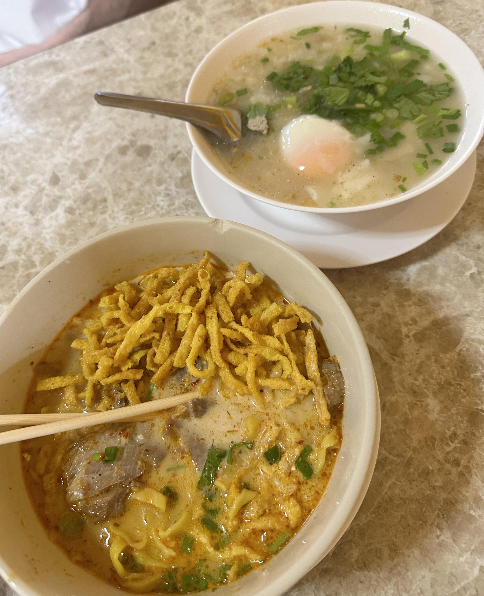 닭죽이랑 까오소이와 덤플링을 시켰는데 처음 먹어 본 까오소이는 그다지 감흥은 없었고(나에겐 좀 짰다).. 닭죽은 담백하고 묘하게 계속 당기는 맛이었다. 이후에 수프로도 먹어봤는데 닭죽이 더 괜찮았다. 아침식사로 먹기 속도 편하고 좋아서 이후에 네 번은 갔다. 또또또또 간 집! 근처에 숙소가 있다면 속 편한 아침식사로 추천합니다! 근데 이후에 닭다리도 먹었는데 그것도 맛있었다.