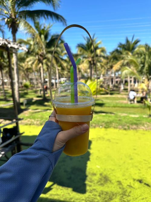 마켓 자체 규모는 크진 않지만 뒤에 펼쳐진 초록초록한 공간에서 여유 있게 주말을 즐기기 좋은 곳이었다. 마켓에서 옷도 사고 망고주스도 먹고..포토스팟도 많아서 사진도 많이 찍고! 그렇게 코코넛 마켓을 구경하며 여유롭게 둘러보었다.