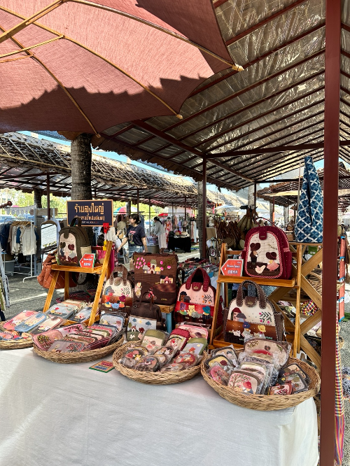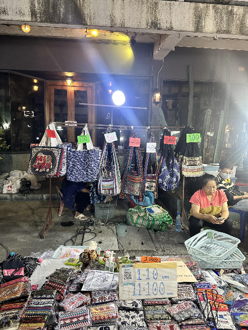 플리마켓 내 다양한 제품 중에서도 나는 이쁜 디자인의 에코백(MADAM CNX)이 눈에 들어왔다. 가격은 저렴한 편은 아니었다. 중사이즈로 구매했고 350밧(약 14,000원)이었다. 마음에 들어서 이후 일정에서 매일 들고 다녔다.