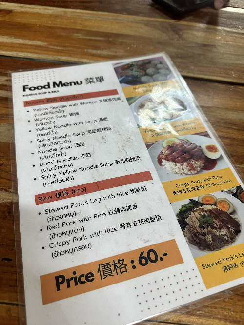 숙소 근처에 봐둔 식당(Lampang Lert Ros)에서 간단히 아침식사를 했다. 벽면에 적혀있는 메뉴를 보고 두리번거리니(읽지 못해서..) 사장님이 영어메뉴판을 건네주셨다.