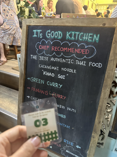 치앙마이선데이마켓 구경 전에 배고파서 밥집을 찾았다. Its Good Kitchen은 구글 리뷰도 좋았고 선데이마켓 거리에 있어서 접근성도 좋아서 저녁밥집으로 정했다. 정했는데.. 선데이마켓 거리엔 엄청나게 많은 인파들이 몰려있었고 특히나 Its Good Kitchen 앞엔 많은 웨이팅줄이... 배가 많이 고파서 포기하고 다른 곳을 갈까 고민했지만, 다시 오기는 어려울 거 같아서 기다리기로 했다.