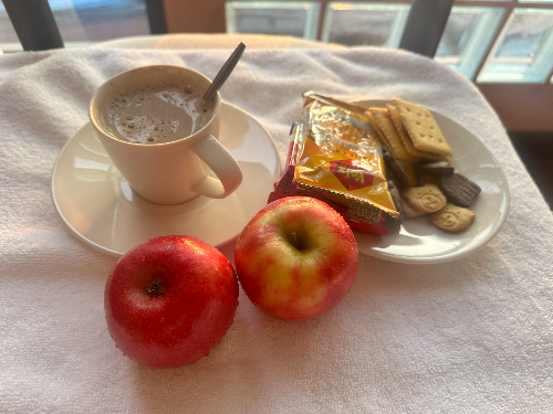 해당 호텔에선 조식을 따로 제공해주진 않고 1층에 카페 같은 공간에서 과일, 주스, 우유, 시리얼, 커피 등이 준비되어 있어서 무료로 즐길 수 있다.(제공되는 사과가 너무 맛있어서 자주 먹었다ㅎㅎ) 호텔 프런트 직원들도 친절했다. 체크인 시간보다 이른 시간에 갔음에도 짐을 맡아주면서 체크인 시간보다 좀 더 일찍 들어갈 수 있게 안내해 주었다.