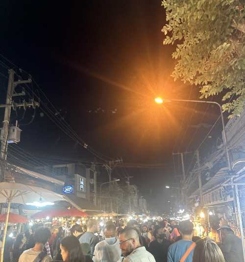 밥을 먹고 치앙마이 선데이마켓 구경을 했다. 치앙마이에 와서 다양한 야시장을 구경했지만 치앙마이 선데이마켓이 역대급 인파였던 거 같다. 사람들에 떠밀려서 구경하는 기분이었달까. 치앙마이 선데이마켓은 일요일 오후 5시부터 시작하는데, 붐비는 시간(7시 이후)에 가면 사람들에게 기가 빨릴 수 있다.